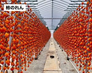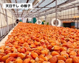 冬の風物詩である「柿のれん」に吊るした市田柿は、ハウス内で日陰干しを行い仕上げ作業に突入しています。