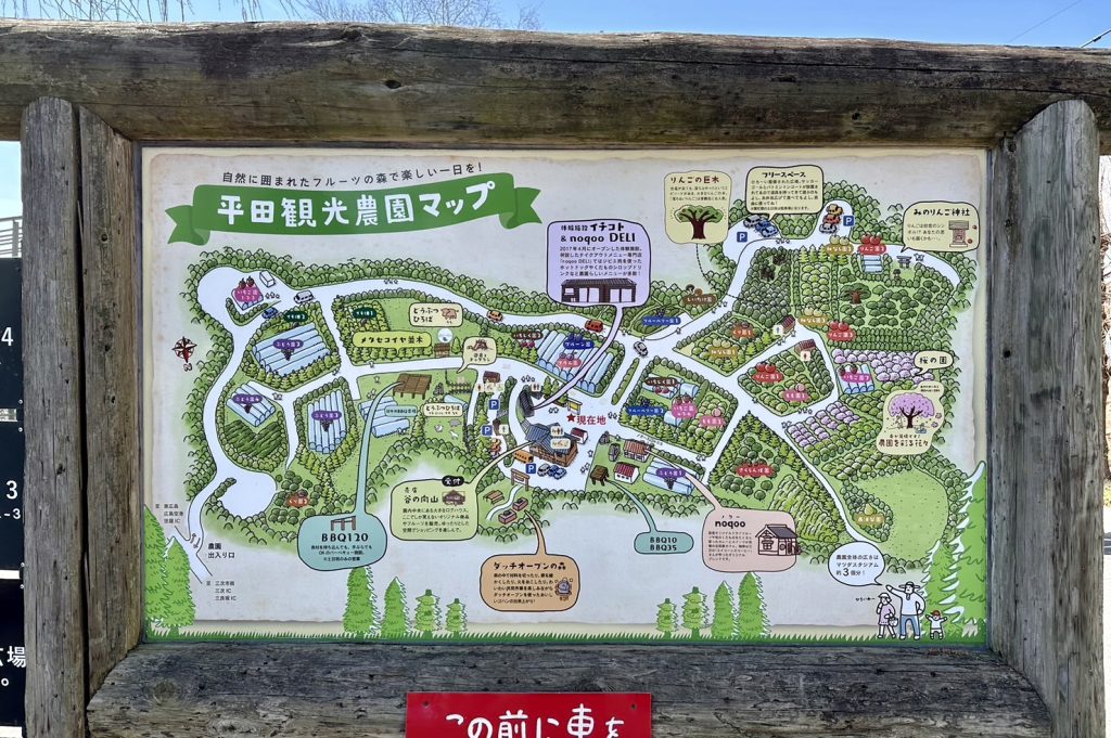 平田観光農園様では、15haの広大な敷地に14樹種150品目もの果物が栽培されていました。