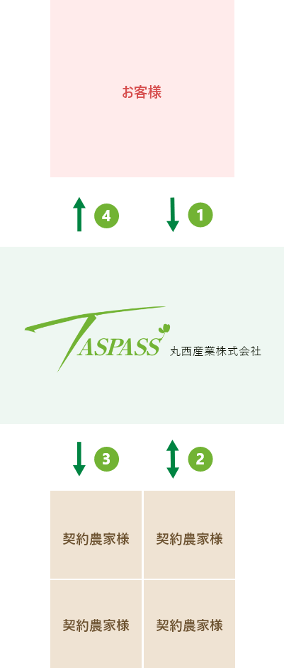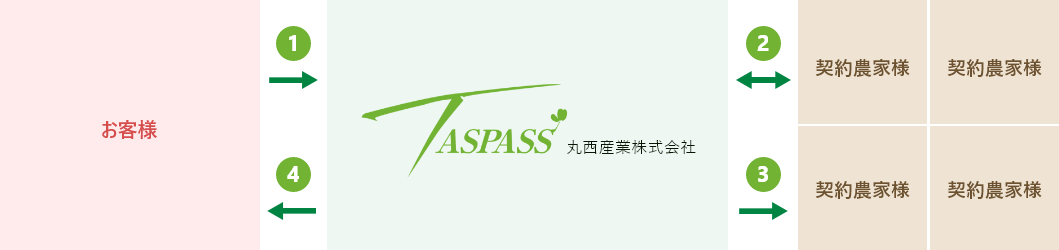 丸西産業では契約生産者と協力し、独自の農産物生産システム「タスパス」を構築することで、